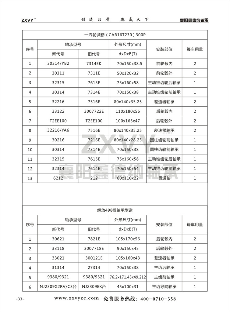 襄阳鑫德纳精密轴承有限公司,始创于1998年,专业制造 鑫德纳ZXVY品牌的高品质轴承及相关产品,是国内轴承行业的领先企业之一,是我国轴承的主要生产基地。公司致力于成为中国轴承企业的标杆,以先进科学的技术、性能可靠的产品和专业周到的服务为用户提供性价比更高的解决方案。鑫德纳ZXVY品牌定位于高端轴承产品的生产研发,我公司专业生产深沟球轴承、圆柱滚子轴承、圆锥滚子轴承、离合器分离轴承、圆锥滚子组合轴承、滚针轴承、角接触球轴承、调心球轴承、推力球轴承、、球面调心滚子轴承等全系列轴承,产品满足东风、解放、重汽、陕汽、华凌、红岩、北方奔驰、大运重卡、三一重工、中联重科、法士特及轻型车系列等车型需求外,还可为用户设计生产微型车、轿车、机械配套及各种非标特殊用轴承;产品远销30多个省市自治区及中东、欧美国家,得到了用户一致认可。